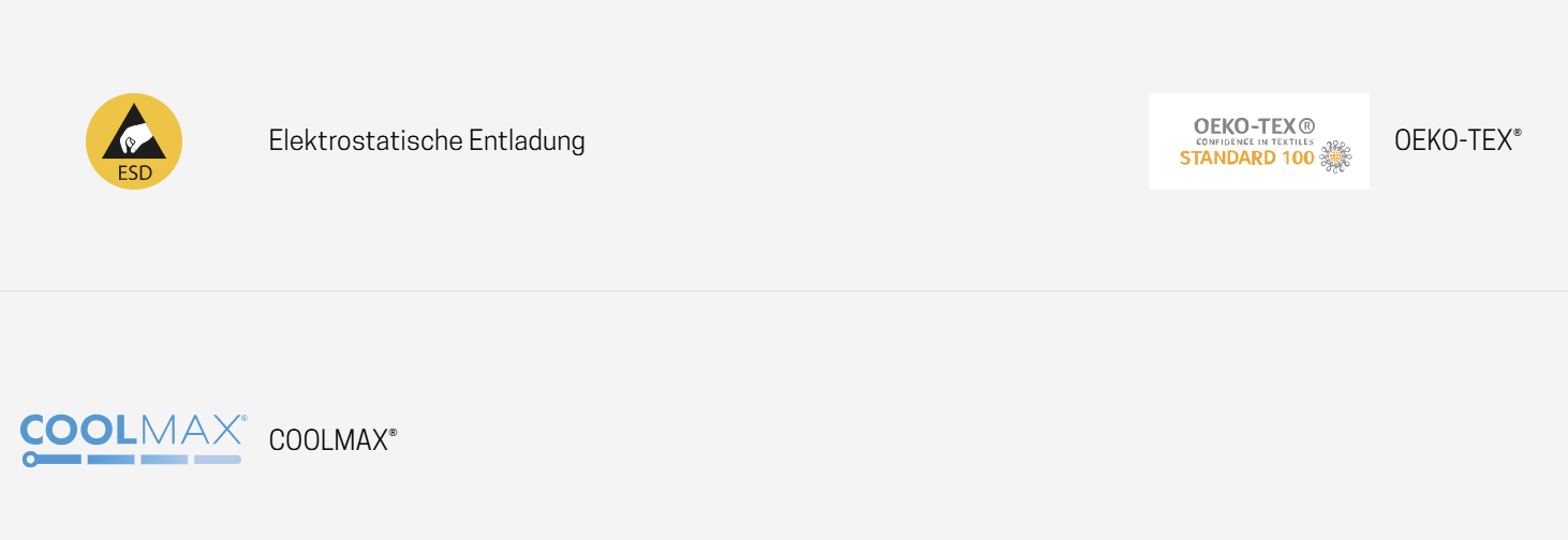 54% COOLMAX | 40% Polyamid | 4% Elastan | 2% ESD-Garn